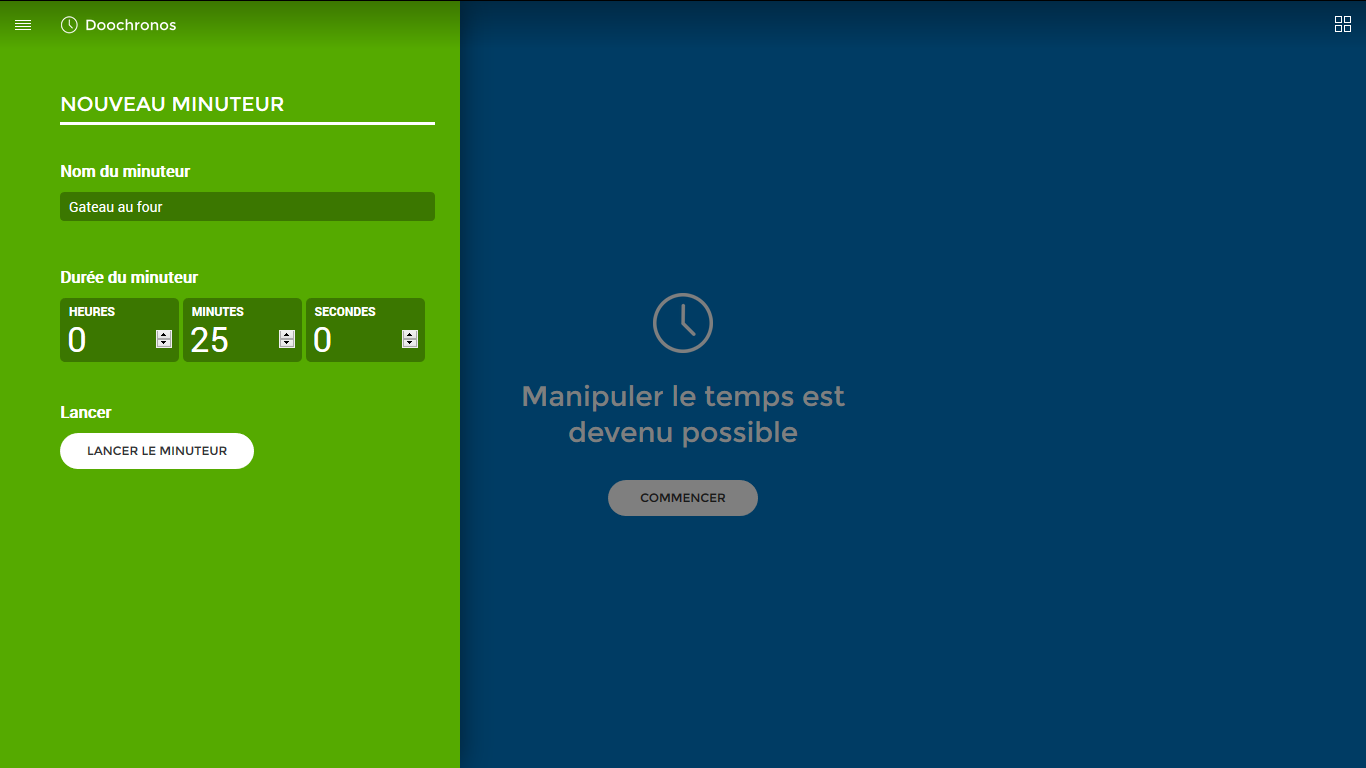 La version finale devra être responsive (c'est-à-dire utilisable sur n'importe quels support tels que smartphone et tablette), permettre de modifier les cartes (minuteurs, chronomètres, etc...) et permettre le calcul de temps séparant deux dates.